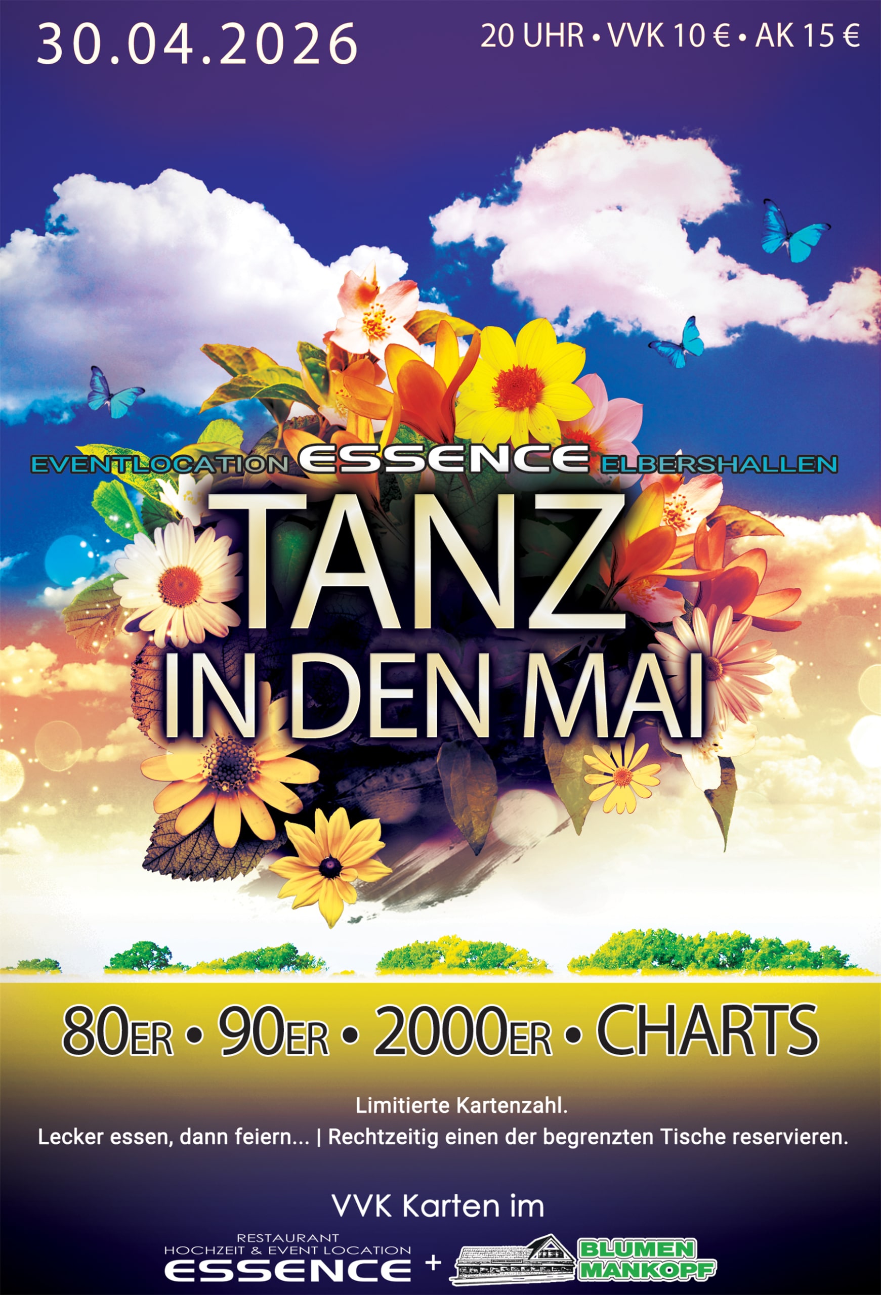 Feiert mit uns den Start in den Wonnemonat Mai bei der „Tanz in den Mai“-Party in der Eventlocation Essence - Elbershallen! 💃🕺 📅 Donnerstag, 30.04.2026 🕗 Beginn: 20 Uhr 🎟 Eintritt: Vorverkauf: 10 € Abendkasse: 15 € 🎶 Freut euch auf die größten Hits aus den 80ern, 90ern, 2000ern und den aktuellen Charts - beste […]